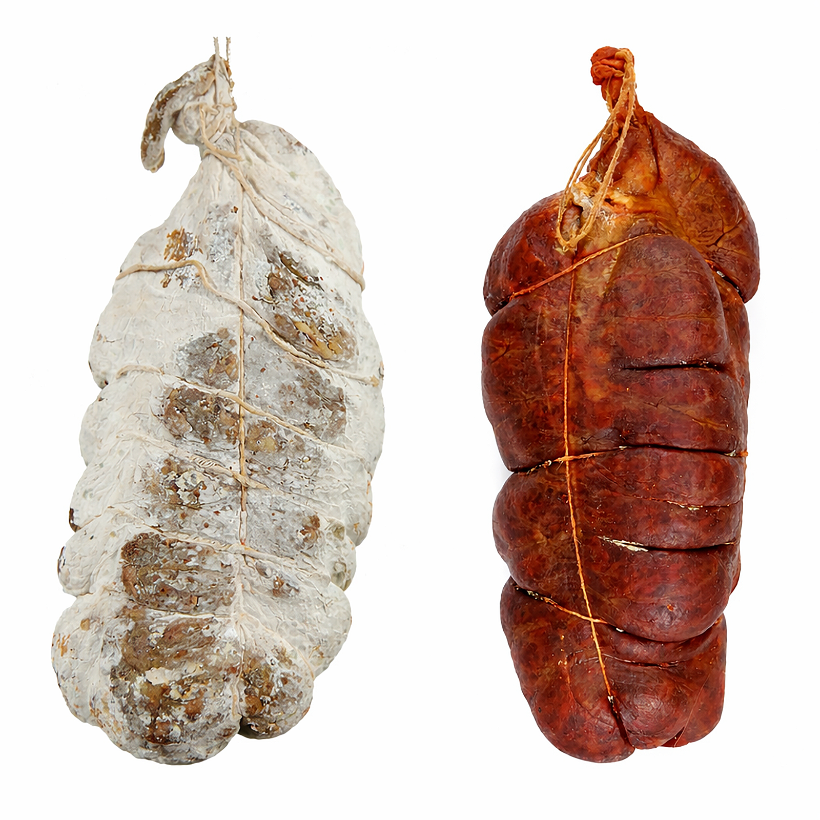 (In the reference photo: the left shows a pressed Soppressata Calabrese; the right shows ’Nduja in Orba—same casing, two very different outcomes.)